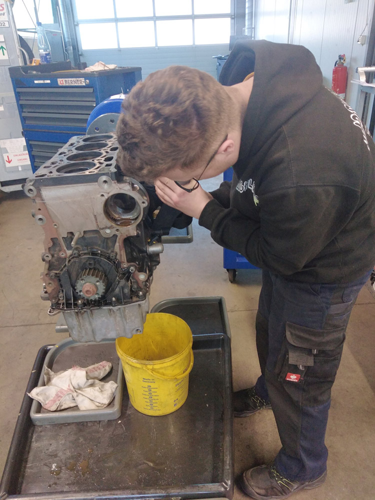Nach der Planung und Gestaltung der ersten Arbeitsschritte, ging es an den Motor. Die Praktischen Aufgaben wurden begonnen: