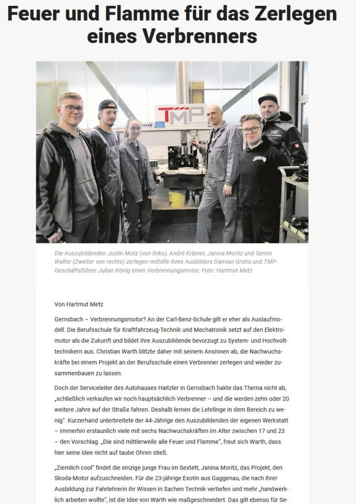 über unsere Nachwuchswerbung erschienen. Hier können Sie den kompletten Artikel lesen.